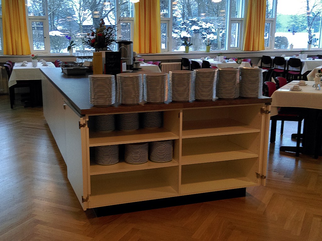 Im Obergeschoss begann das besondere Projekt mit einem Podest, welches mit rustikalem Eiche- Laminat belegt und beplankt wurde. Wie auf den Bildern zu sehen entstanden kleine Sitzbuchten, die mit individuellen Sitzbänken und Tischen bestellt wurden. Beide Möbel bestehen aus kerniger Eiche, die anschließend geölt wurde.