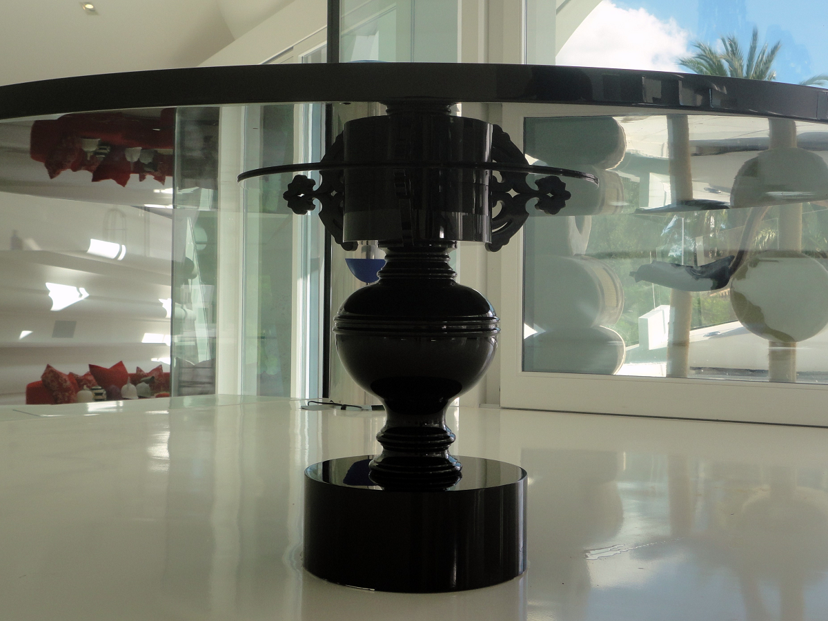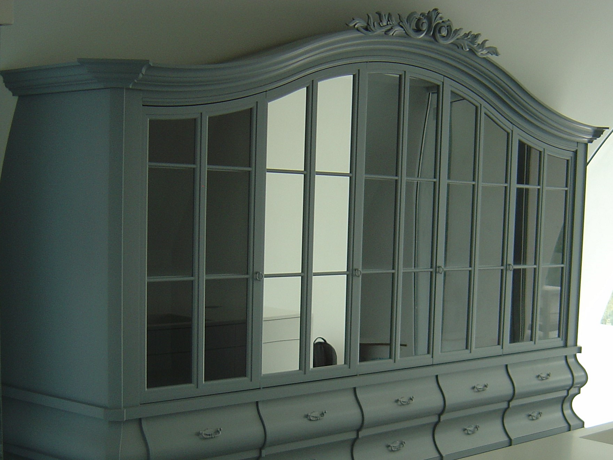 Wir entwarfen ein Sideboard, eine Schrankwand, einen Hochglanztisch und Spiegelrahmen. An den Barockstil angelehnt, sollten alle Stücke geschwungene Formen und dekorative Elemente beinhalten.